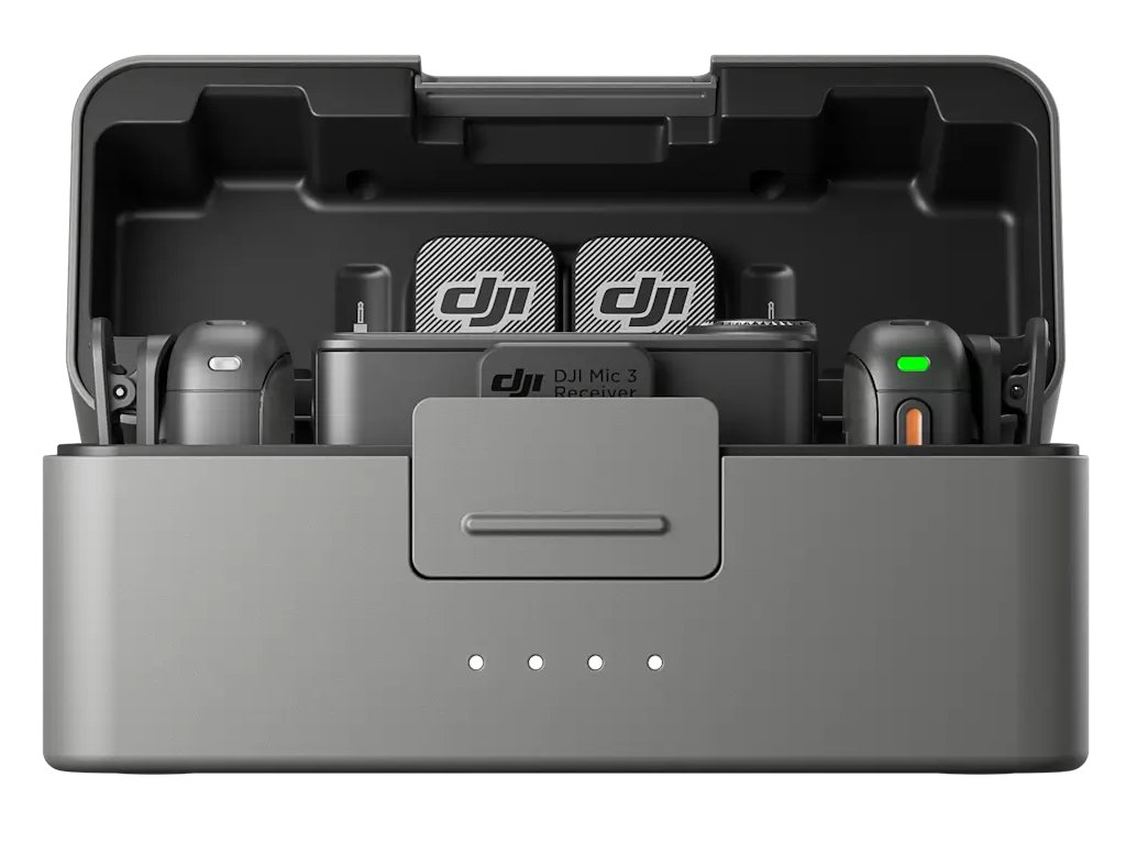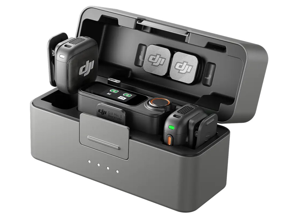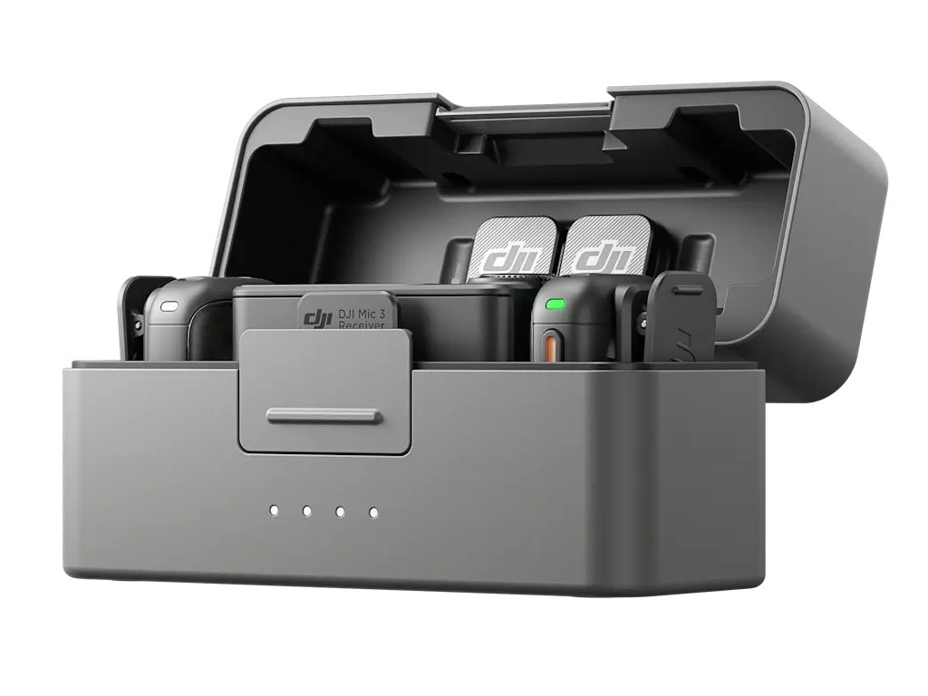 Компактен и същевременно универсален DJI Mic 3 е лек и компактен микрофонен комплект. Предавателите могат да се закрепят чрез магнит или клипс, като въртящият се клипс позволява да се настрои ъгълът точно според нуждата. Зарядното калъфче побира два предавателя и един приемник – дори с поставени ветрозащитни капачки и магнити. Всичко е веднага готово за използване, без необходимост от сваляне на аксесоарите.