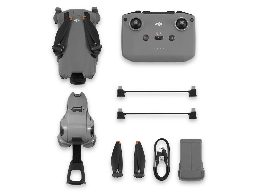 В допълнение към DJI Mini 5 Pro, пакетът Pro Fly More Combo включва допълнителни резервни части и контролер DJI RC-N3, който ти позволява да свържеш мобилното си устройство (до 180 x 86 x 10 mm) чрез USB-C или Lightning, осигурявайки до 3,5 часа автономия и комуникация.