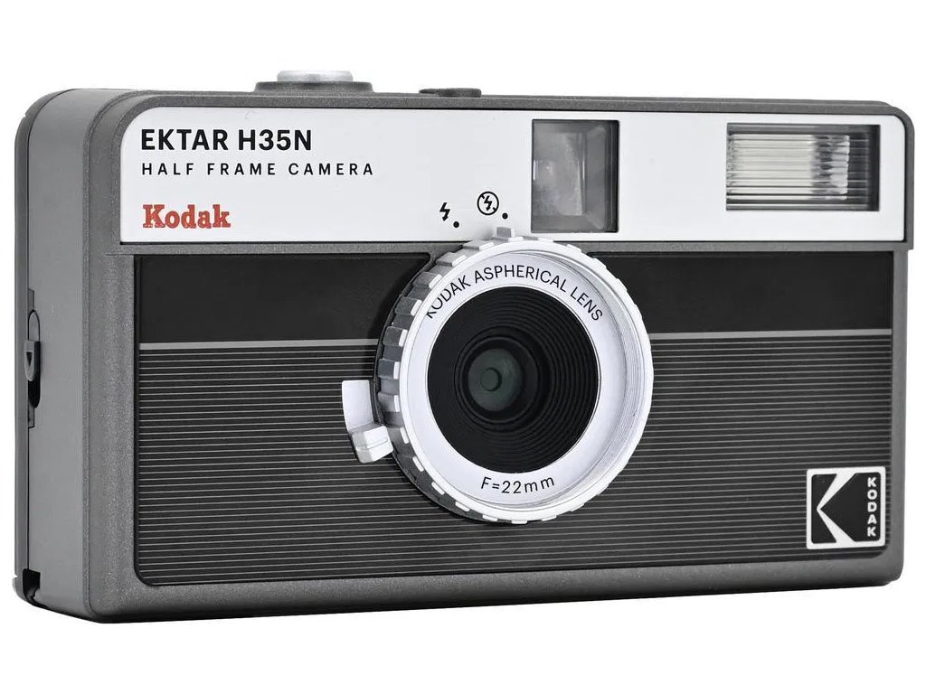 Kodak EKTAR H35N е по-усъвършенствана версия на популярния полукадров фотоапарат H35. Той предлага подобрена оптика, стъклен елемент в обектива и нов превключваем ND филтър за снимане при силна дневна светлина. Благодарение на half-frame формата от един 35mm филм могат да се заснемат до 72 кадъра – идеален избор за всеки, който иска да се наслади на аналоговата фотография лесно и стилно.