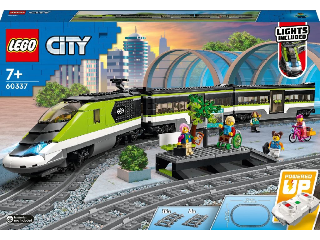 Комплектът LEGO® City Експресен влак (60337) включва дистанционно управляван локомотив с технология LEGO Powered Up и работещи фарове, вагон-ресторант, пътнически вагон, перон, 24 елемента релси и 6 минифигурки, с които малките любители на влаковете могат да се потопят в безброй железопътни приключения.