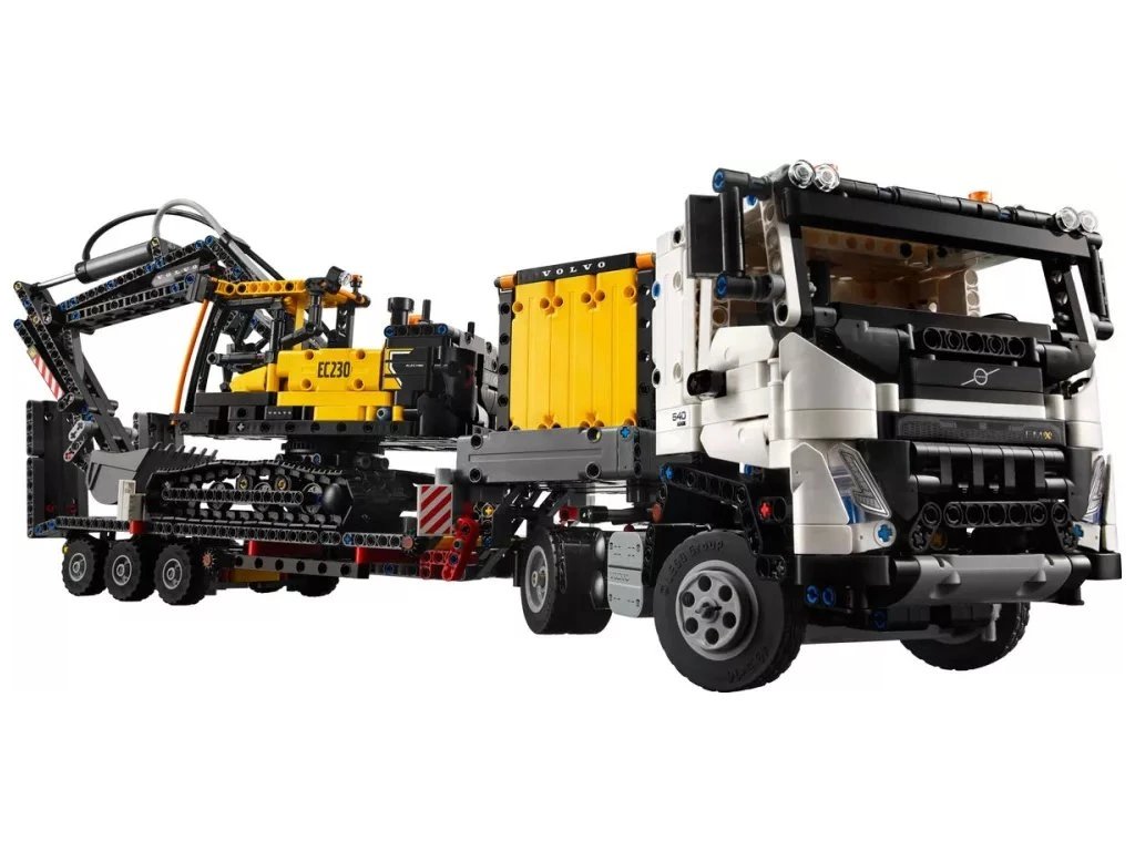 Малките строители могат да отворят вратите на камиона LEGO Technic и да повдигнат кабината, за да видят 6-цилиндровия двигател с подвижни бутала. След това могат да насочат камиона към мястото, да откачат ремаркето и да спуснат рампата, за да може багерът да слезе. Багерът разполага с отварящи се врати и множество функции. Наблюдавайте как се върти на 360 градуса върху веригите си, а след това използвайте пневматичната помпа, за да повдигате и спускате кофата.